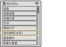 选择 <显示顺序(主页)>通过重新安排按钮自定义<主页>屏幕。 自定义显示 ![]() 可以更改屏幕显示的相关设置,例如打开本机后随即显示的屏幕,以及是否显示剩余纸张和墨粉信息。 <显示设置> 可以设置特定时间后未执行操作时要显示的屏幕。 <自动重置后的功能> |