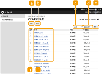 注册自定义纸张类型的设置时,务必更改其名称。不能更改本机中注册的默认纸张类型的设置。 |
