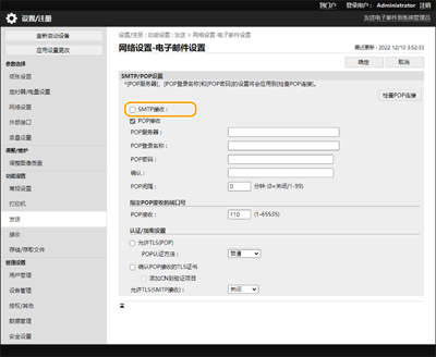 如果电子邮件通过SMTP发送至本机,则本机在接收到电子邮件后会立即进行打印。在您想将从Canon多功能打印机接收到的传真文档转发至本机并在本机上打印时,请启用此功能。