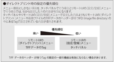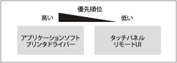メニュー機能とアプリケーションソフトやプリンタードライバーとで同じ設定項目がある場合には、アプリケーションソフトやプリンタードライバーで設定した内容の方が有効になります。また、メニュー機能にしかない項目を、操作パネルで行う場合とリモートUIで行う場合では、後から設定した方の内容が有効になります。