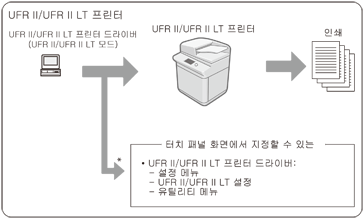 UFR II/UFR II LT, PCL, PS 및 다이렉트 인쇄 프린터의 조작 차이점