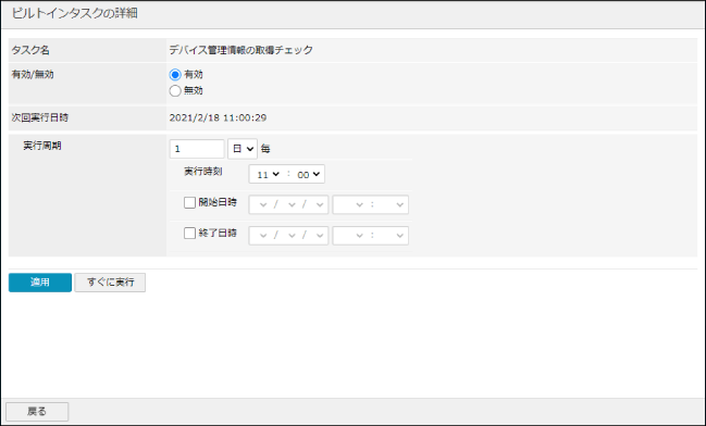[ビルトインタスクの詳細]ページで、タスクの実行スケジュールを設定します。
