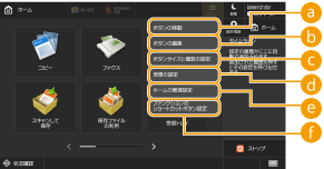 <機器画面>:未認証、ゲストユーザーなど個人画面を使用していないユーザーの共通画面を設定します。認証ユーザーが<個人画面>を設定するまで、この<機器画面>の設定内容が適用されます。