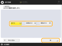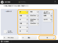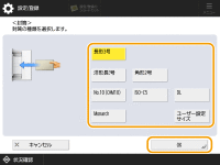 2 | 封筒の種類を選ぶ ![]() 定形外の封筒を登録する場合は、<ユーザー設定サイズ> <次へ>を押したあと、<X>または<Y>を押し、テンキーでそれぞれの辺の長さを入力します。 |