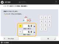 <X>辺と<Y>辺の長さを設定します。<X>または<Y>を押し、テンキーでそれぞれの辺の長さを入力します。
