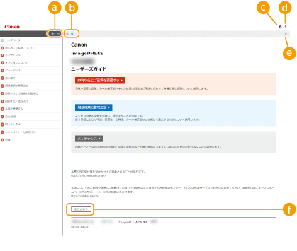 ユーザーズガイドを起動すると最初に表示されるページです。
