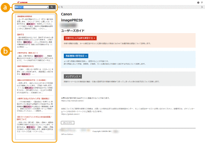 ユーザーズガイドはいくつかの画面に分かれていて、それぞれ内容が異なります。