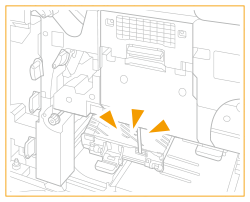 ![]() | 両面ガイド(C4)に紙片が残っていないか確認する. 紙片残りがあれば、取り除いてください。 ![]() ![]() 手を放すとC4ガイドは閉じます。 |