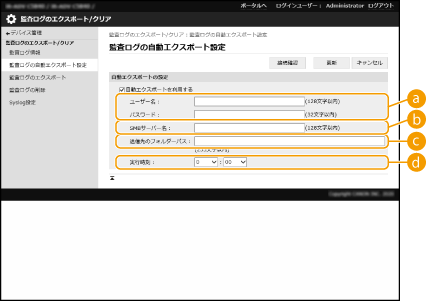ログをファイルに出力する際は、TLSを使用するか、IPSecを設定してください。詳細については、imagePRESS Serverの説明書を参照してください。 |
