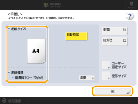 奥まで差し込むと、用紙サイズと種類を設定する画面が表示されます。