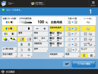 コピー部数と設定内容によって、このボタンが表示されます。大量コピーなどの前に、仕上がりを確認することができます。