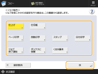 <ジョブ終了通知>、<ボックスに保管>を設定するには、