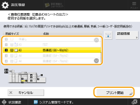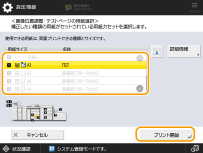 調整したい種類の用紙がセットされている給紙箇所を選択して、<プリント開始>を押す