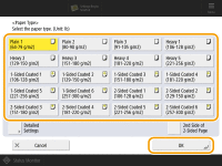 If a screen other than that for specifying the paper size and type is displayedIf a message prompting you to adjust the paper guide is displayed, adjust the width of the paper guide again and press <OK>. |