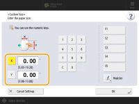 Press <X> or <Y> to enter the length of each side using the numeric keys. ![]() If you register the paper size you use frequently on buttons <S1> to <S5>, you can call them up with a simple press. Registering Free Size Paper (Custom Size Paper) | |