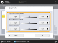 If the density of the printing is significantly different from the original document, follow the procedure below to adjust the scan density to be closer to the original.