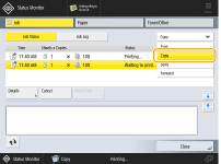 Select <Copy> from the drop-down list and display waiting copy jobs.