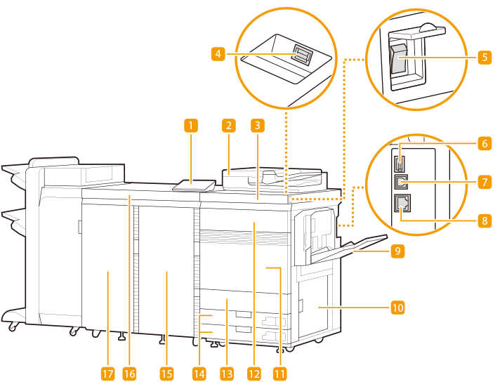 Automatically feeds originals into the machine for scanning. When two or more sheets are loaded in the feeder, originals can be scanned continuously.