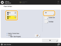 If <Custom> is displayed even though the standard size paper is loaded, press <Custom Size>  <Cancel Settings>. The correct size will be displayed.