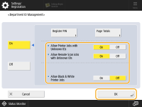 If <Off> is selected, a Department ID must be entered when executing a corresponding job.