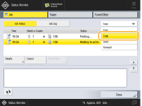 Select <Copy> from the drop-down list and display waiting copy jobs.