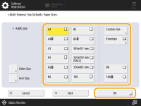 2 | Select the paper size. ![]() ![]() For information on the paper sizes displayed when <Other Size> is pressed, see Available Paper. |