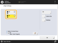 1 | Select the paper source in which paper is loaded and press <Other Size>. |