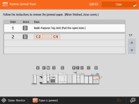 Check the paper jam location on the screen, and see the procedure according to the paper jam location (image).