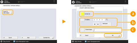 Press <Issued To (Altn. Name)>, specify an IP address or a domain name, and press <OK>.