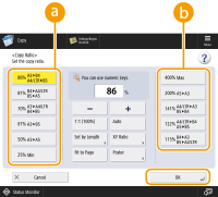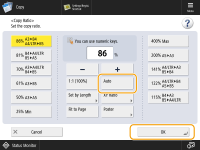 If you specified <Auto XY Ratio>, select paper in <Select Paper>. If you do not specify a paper size, the copy ratio is automatically set to match the paper loaded in paper drawer 1.