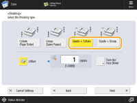 Select <Staple + Collate> or <Staple + Group> and press <Next>.