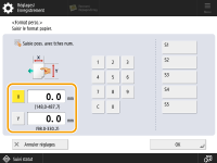 2 | Sélectionnez le type d'enveloppes chargé dans la cassette à papier. Si le type d'enveloppe n'est pas correctement défini, un bourrage papier se produira. Lorsque vous utilisez des enveloppes de format personnalisé, appuyez sur <Personnalisé>  <Suivant>  et saisissez les dimensions des enveloppes. Appuyez sur <X> ou <Y>  pour saisir la longueur de la dimension considérée. |