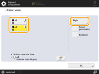 Sélectionnez la source de papier dans laquelle le papier est chargé et appuyez sur <Régler>.