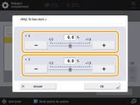 Si la taille de l'image copiée diffère légèrement de celle de l'original, suivez la procédure suivante pour effectuer un réglage précis de la taille de l'image. Vous pouvez modifier l'agrandissement de la largeur dans le sens horizontal et dans le sens vertical.