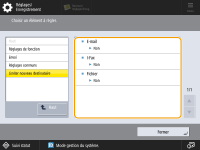 Les destinataires qui peuvent être spécifiés pour l'envoi de documents numérisés peuvent être limités à ceux enregistrés dans le carnet d'adresses ou les boutons 1 touche, ceux enregistrés dans <Réglages favoris> ou <Me l'envoyer> ou ceux qui peuvent être recherchés sur le serveur LDAP. Lorsque cette fonction est activée, les utilisateurs ne peuvent pas spécifier les destinataires en utilisant la saisie de caractères alphanumériques.
