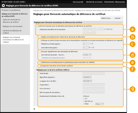 Cliquez sur [Réglages pour Demande automatique de délivrance de certificat].