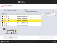 Pour plus d'informations sur le grammage de base et sur le format de papier pouvant être utilisés, reportez-vous aux éléments de "Magasin Papier POD-F" dans Papier disponible. |