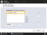 Pour modifier le nom d'une image de forme déjà enregistrée, sélectionnez l'image de forme dans la liste de l'étape 5 et appuyez sur <Détails>  <Renommer image mémorisée>. Pour supprimer une image de forme, sélectionnez l'image de forme dans la liste et appuyez sur <Supprimer>. Vous pouvez enregistrer jusqu'à 100 formes d'image. Cependant, ce nombre varie en fonction de la capacité du périphérique de stockage. |