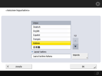 È possibile modificare la lingua visualizzata sul display touchpanel e sulla tastiera.