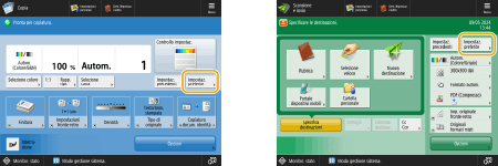 È possibile modificare i pulsanti di impostazione che vengono visualizzati nelle schermate Funzioni di base (per copia e scansione). È inoltre possibile visualizzare una schermata Funzioni di base diversa, personalizzata per ciascun utente che ha effettuato l'accesso.