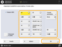 2 | Selezionare il tipo di buste. ![]() Per registrare una busta in formato personalizzato, premere <Personalizz.> <Avanti> quindi <X> o <Y> per specificare il lato, quindi utilizzare i tasti numerici per inserire la lunghezza del lato specificato. |