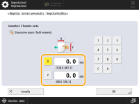 Specificare la lunghezza del lato <X> e del lato <Y>. Premere <X> o <Y> per inserire la lunghezza di ciascun lato usando i tasti numerici.