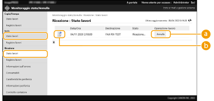 È possibile verificare lo stato di I-fax ed e-mail in attesa di essere inviati, I-fax che sono stati ricevuti e I-fax in attesa di essere inoltrati. È possibile anche annullare il processo di invio e di ricezione dei documenti.