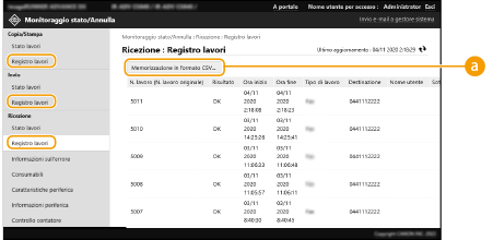 I dati di registro possono essere esportati e salvati come file CSV (*.csv) sul computer.