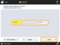 Quando la destinazione di uscita è impostata sul finisher | Quando la destinazione di uscita è impostata sull'area di impilatura dello stacker |