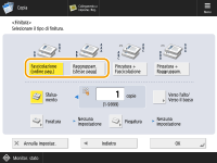 ![]() | Quando si effettuano due copie o più dall'alimentatore, è possibile selezionare la fascicolazione o il raggruppamento per l'ordine delle stampe. Selezionare "Fascicolazione" per stampare in ordine di pagina sequenziale. Selezionare "Gruppo" per stampare tutte le copie di ogni pagina insieme, ad esempio 10 fogli della prima pagina, 10 fogli della seconda pagina e così via. |