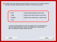 Premere <Ignora errore> per saltare la stampa per la quale si è verificato un errore. Tuttavia, i dati per i quali è stato visualizzato un errore non verranno stampati.