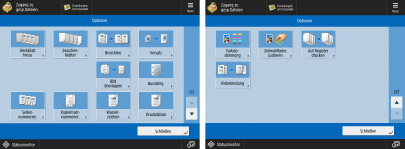 Optionen auf dem Bildschirm für Druckeinstellungen