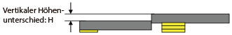 Vertikaler Abstand des Fußbodens (Diese Methode wird verwendet, wenn sich eine Stufe im Fußboden befindet.) | Bringen Sie zwei Bodenplatten nebeneinander an und legen Sie an der Stelle auf den Fußboden, auf dem das Gerät aufgestellt werden soll. Stellen Sie nach der Berechnungsmethode für die "Ebenheit des Fußbodens" die eine Bodenplatte horizontal ein. Und stellen Sie dann die andere Bodenplatte auf die gleiche Weise horizontal ein. Messen Sie die Höhendifferenz zwischen den beiden Bodenplatten.