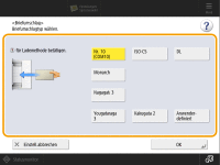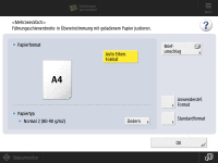 Wenn ein anderer Bildschirm als der für die Angabe des Papierformats und -typs angezeigt wirdWenn eine Meldung angezeigt wird, die Sie auffordert, die Papierführung einzustellen, stellen Sie die Breite der Papierführung ein, und drücken Sie <OK>. |